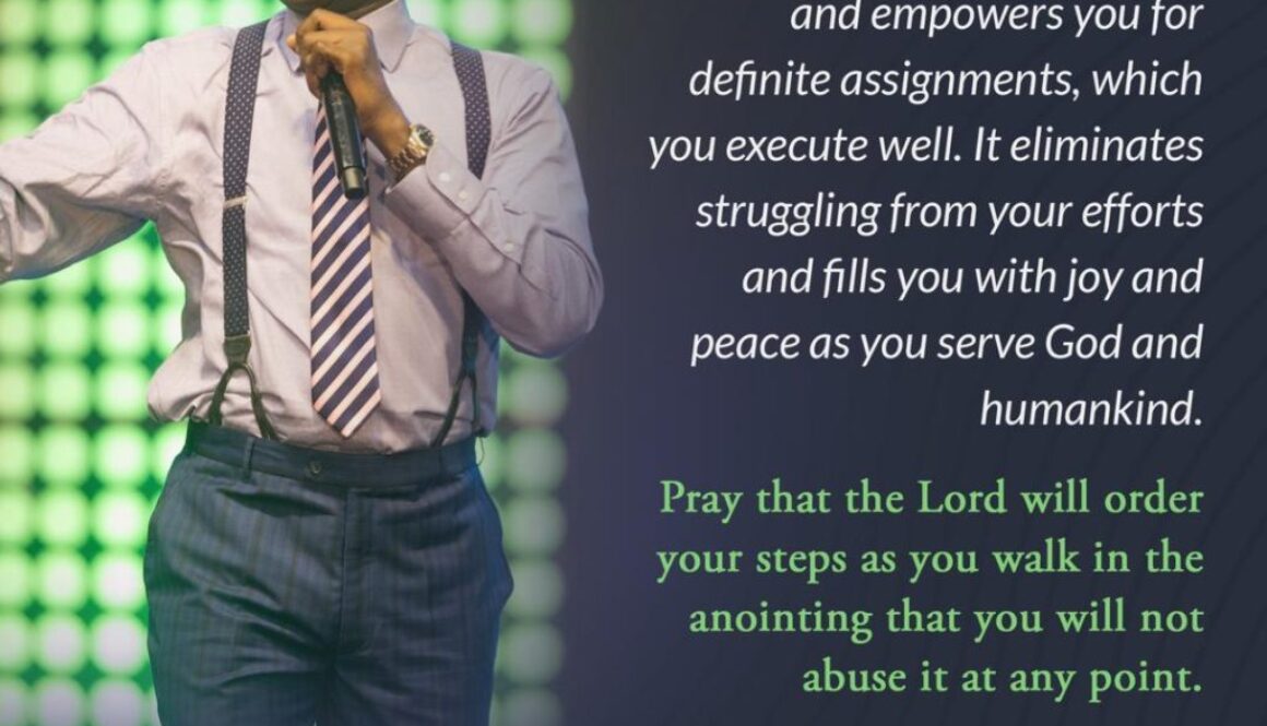 Prayer Pray that the Lord will order your steps as you walk in the anointing that you will not abuse it at any point.