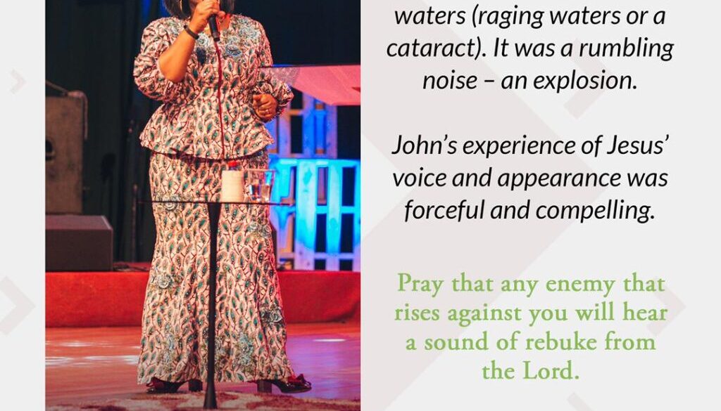 1. Overwhelming — The sound of God’s voice or word overwhelms our thoughts, words and will. The brightness and sound that emanated from the glorious Jesus Christ were so compelling that John collapsed.